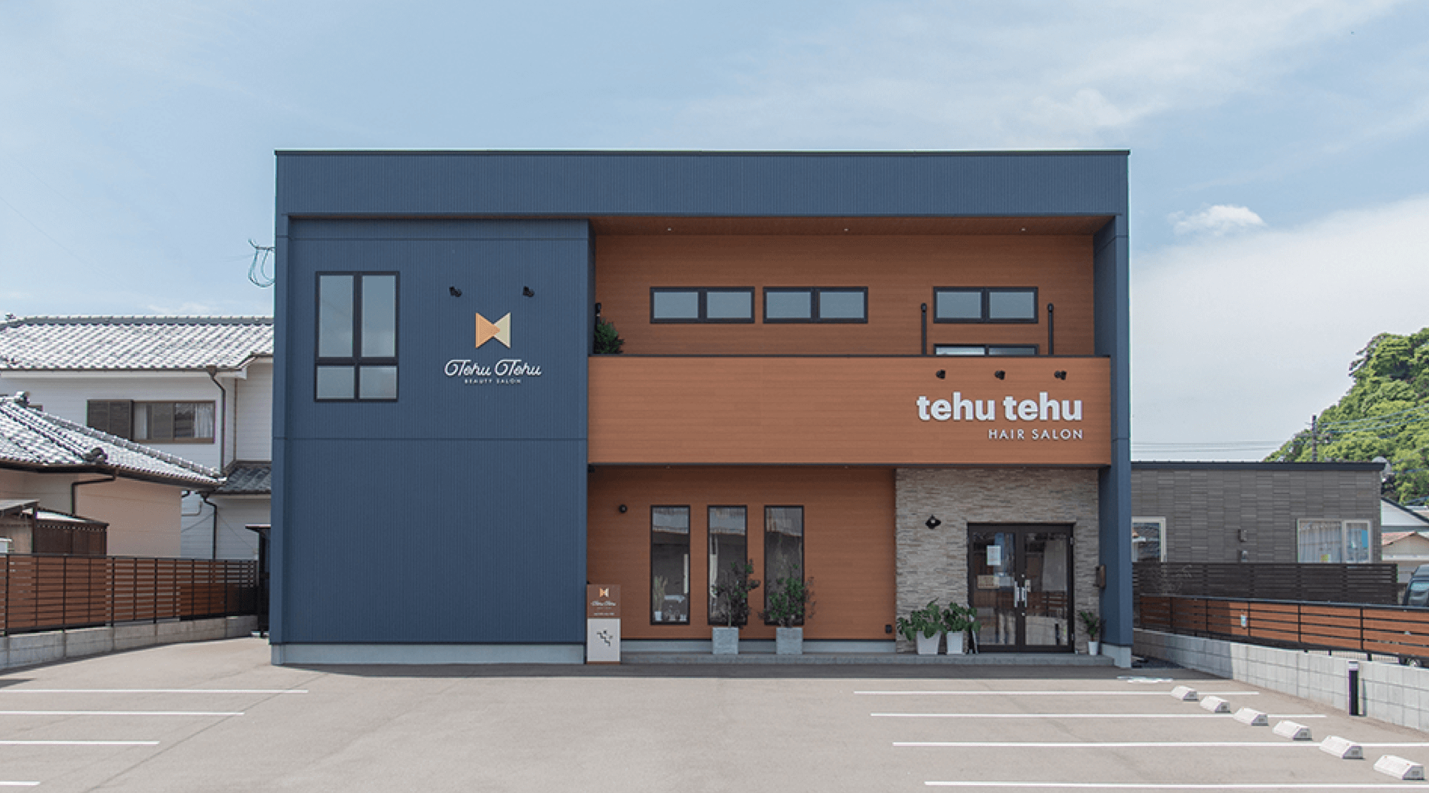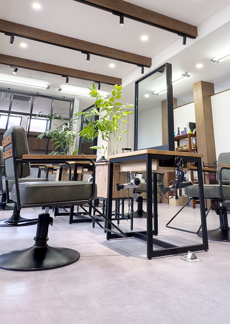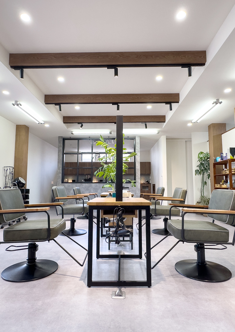 1Fが美容室、2Fは光脱毛、まつ毛パーマ、フェイシャル、痩身エステなどができる完全個室のエステサロンになっており、延岡では他にないトータルビューティーサロンです。