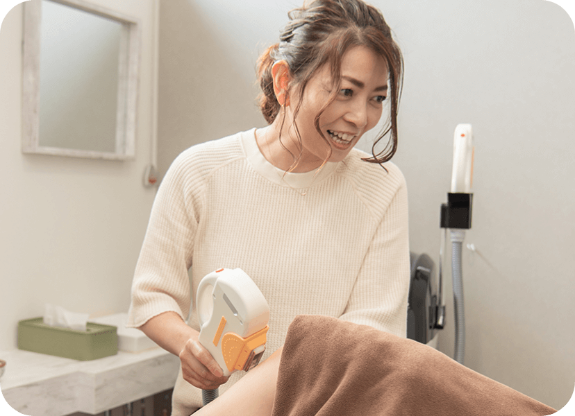 当店の脱毛機は、痛みをほぼ感じませんが、感じ方には個人差もございますのでその際はお客様とご相談しながらパワーを調整いたします。
