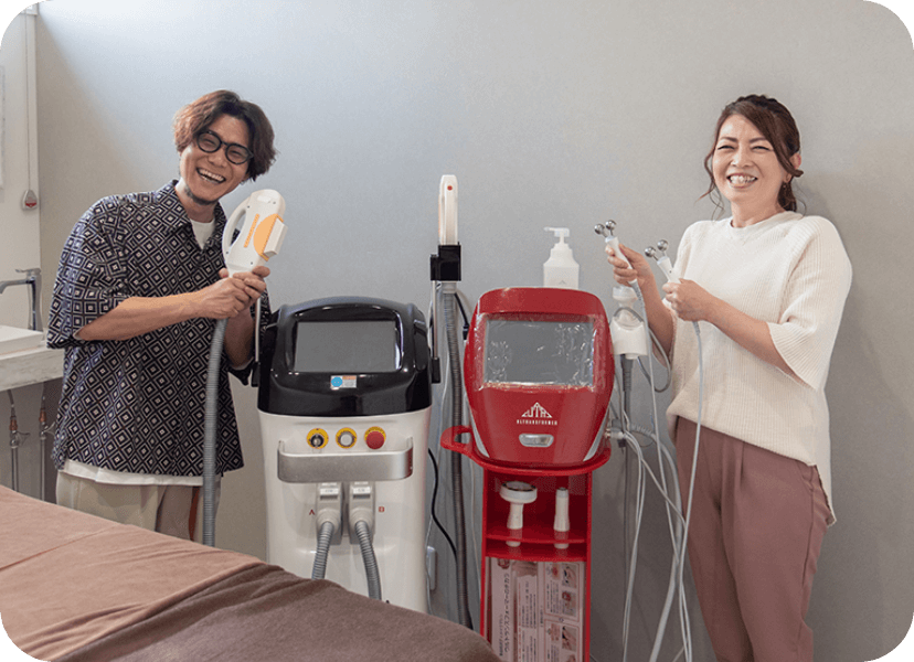1階が美容室になっており、1つの場所でトータルビューティーを行えます。美容室との予約でさらにお得に通うことができます!お気軽にご相談ください。